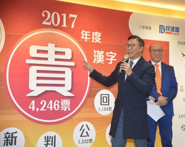 民建聯舉辦「香港年度漢字」評選,歷時一個月的投票期於本月20日結束,總共有1.7萬人透過網上或遞交表格參與投票,比去年多了近4500人投票,其中有效票數為17369,結果「貴」字以4246票當選為年度漢字,其次為2563票的「樓」字及2553票的「民」字,其他候選漢字則有「新」、「風」、「回」、「創」、「公」、「智」、「判」。