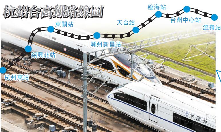 根據規劃,杭紹台鐵路項目全長269公里,新建線路224公里,線路速度目標值350km/h。線路途經杭州市蕭山區,紹興市越城區、上虞市、嵊州市、新昌縣,台州市天台縣、臨海市、椒江區、路橋區、溫嶺市。根據投資協議,項目合作期為34年,其中預估建設期4年,運營期30年。