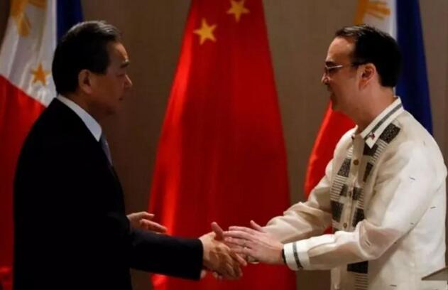 ▲资料图片:2017年7月25日,中国外交部长王毅(左)在马尼拉与菲律宾外交部长卡耶塔诺举行会晤,并谈及南海问题。