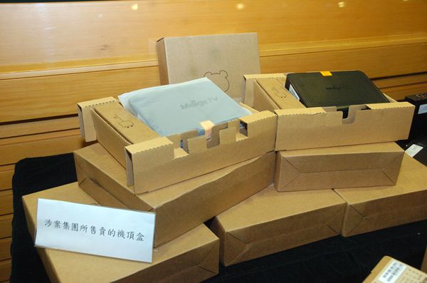 圖為海關當日展示檢獲的侵權機頂盒。(資料圖片)