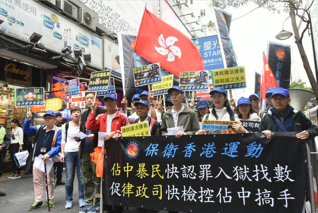 2014年發生的79天違法「占中」,令香港各界震怒。民間組織「保衛香港運動」昨日趁元旦日舉行「占中暴民,快入獄找數」游行,約30人參與。他們指出,雖然與「占中」相關的冲擊政府總部案、「占旺」藐視法庭案、旺角暴亂案等的主事者陸續被落案起訴、定罪及判刑,然而多名「占中」搞手仍然逍遙法外,令香港「法治之都」的金漆招牌受到嚴重的損害。
