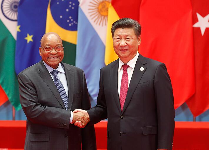 2016年9月4日,二十国集团领导人第十一次峰会在杭州国际博览中心举行。图为习近平同南非总统祖马握手。 中新社