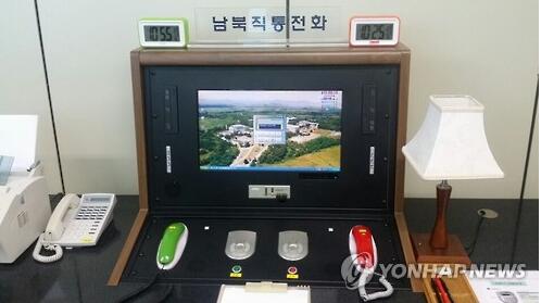 资料图片:板门店内韩朝热线电话(韩联社)