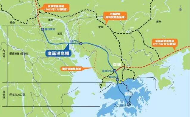 广深港高铁香港段工程于于2010年展开,全长26公里,以全隧道设计,设计时速与内地的城市隧道段一样是时速200公里,短途往来福田站、深圳北站、虎门站和广州南站。