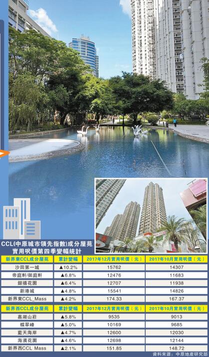 【香港商報网訊】記者曾浩榮報道:2017年絕對算得上香港樓價牛市的一年,當中新界各個屋苑升勢尤其凌厲,令1萬元呎價單位幾近絕迹!綜合美聯研究中心及土地註冊處資料顯示,2017年首11個月二手住宅註冊量最多50個私人屋苑中,當中平均實用呎價升逾二成的屋苑共有4個,全屬新界藍籌屋苑,同時呎價仍未破萬的亦只有4個屋苑,同樣皆位於新界。