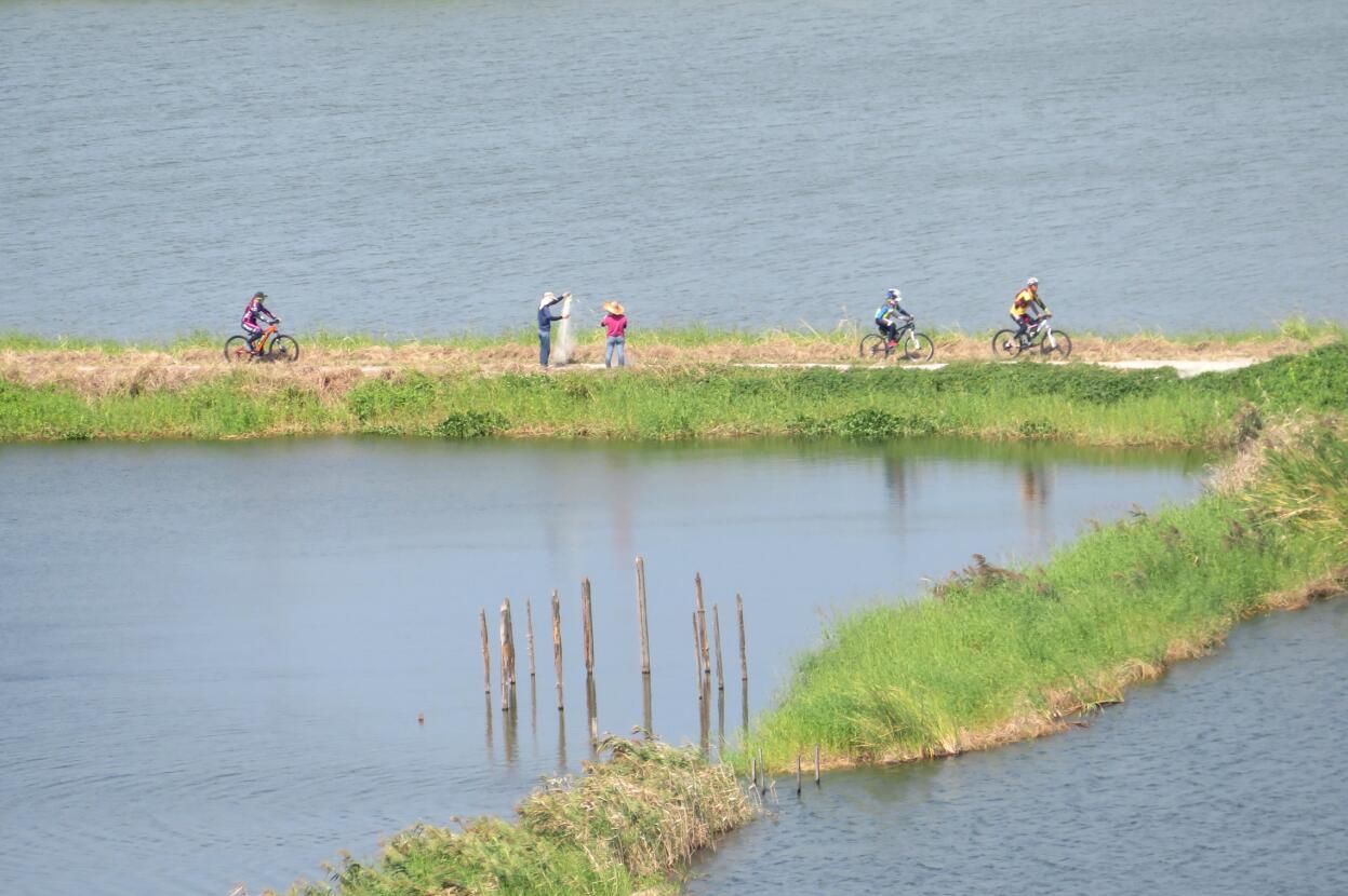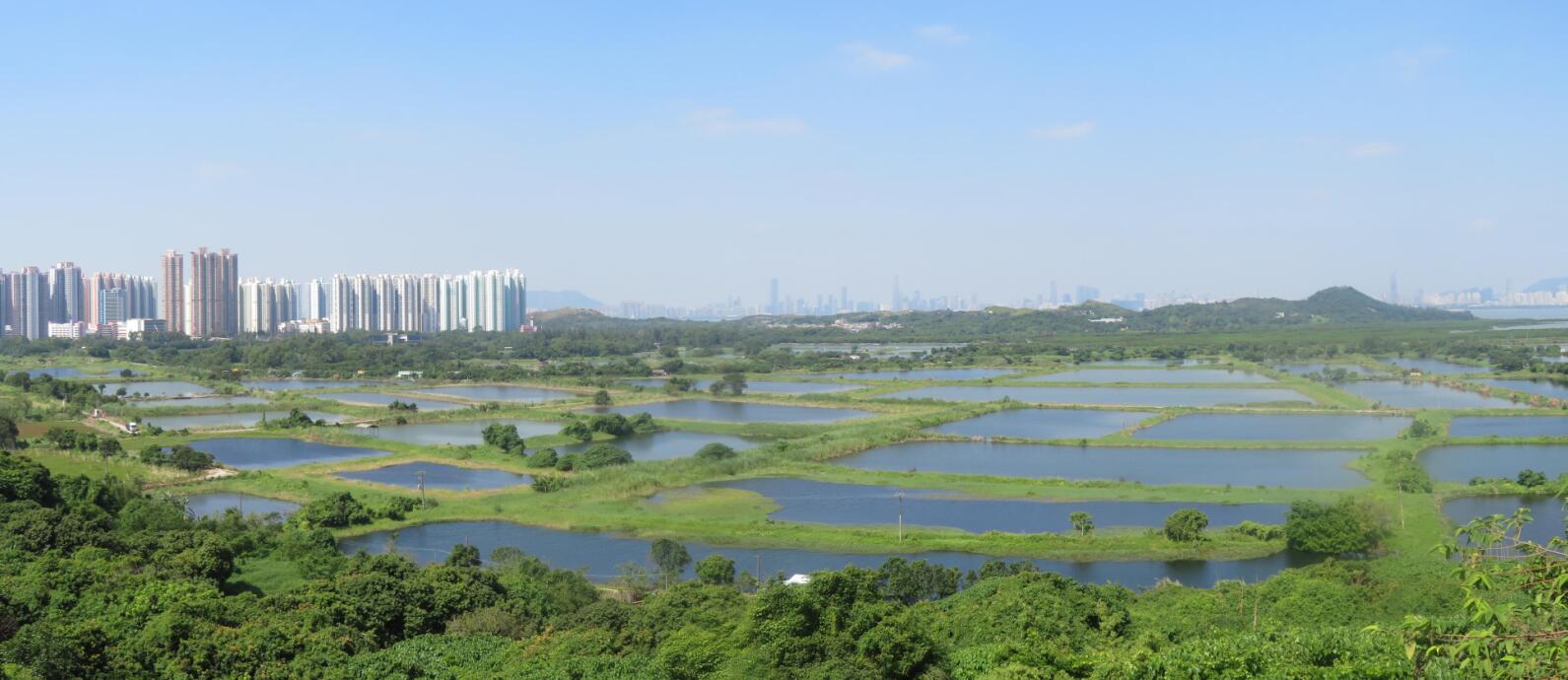在這膠着的期間,豐樂圍的水鄉景色沒變,從附近村落吳屋村的小山俯瞰,阡陌魚塘波光閃閃,遠處可見天水圍樓群,更遠一點,就是深圳。人與車在大片魚塘泥路上頓變渺小。走回平地穿梭魚塘堤圍,不少塘上棚屋已破爛,一些魚塘被鳳眼藍佔據,這些在在顯示魚塘乏人打理。據環團人士說,圍內漁民早已走得七七八八,將來變化未可料。