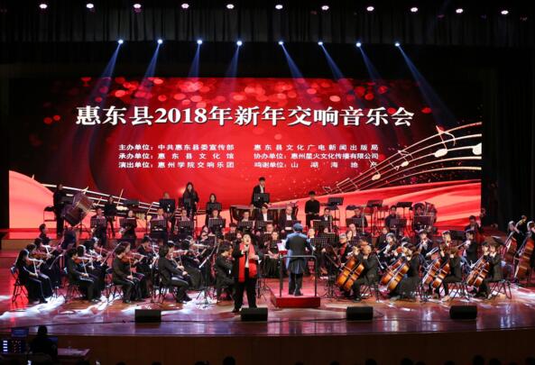【香港商报网讯】2017年12月29日晚,惠东县2018年新年交响音乐会在该县文化中心举行,活动旨在让惠东县群众在家门口就能享受、体验多层次、特色化的文化盛宴,领略高雅艺术魅力,提高市民文化素养和城市文明程度。