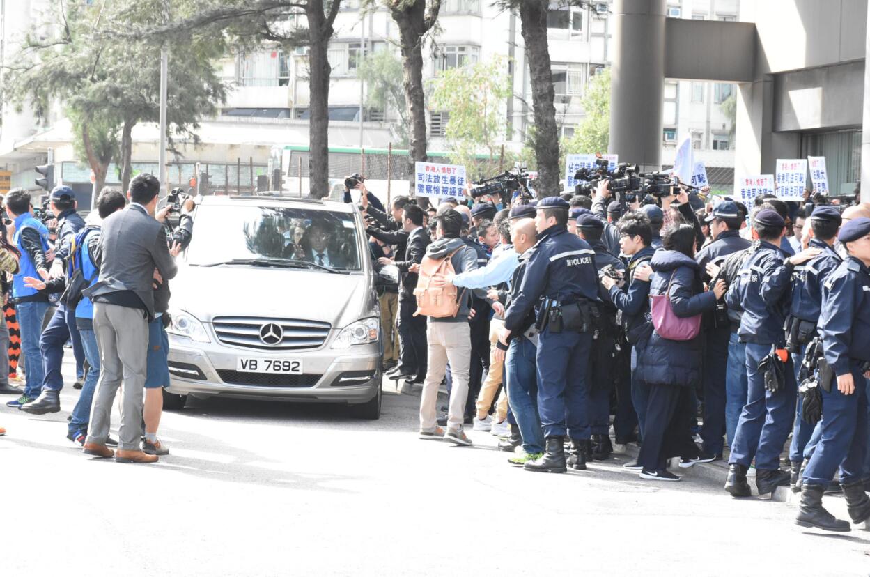 大批传媒在东区法庭外团访朱经纬。