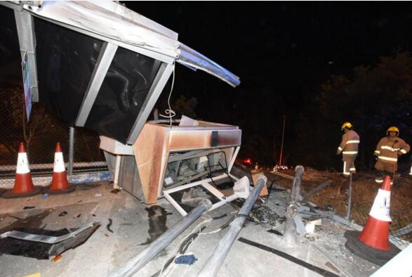 巴士站被撞至斷柱。圖:星島