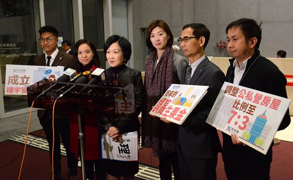新民黨所提出的多項建議之中,在土地方面要求將公私營房屋比例由現時六四比,調整至七三比,并將啟德和青衣兩幅擬售私人住宅用地改作興建居屋,又支持政府在東大嶼山水域興建人工島等。