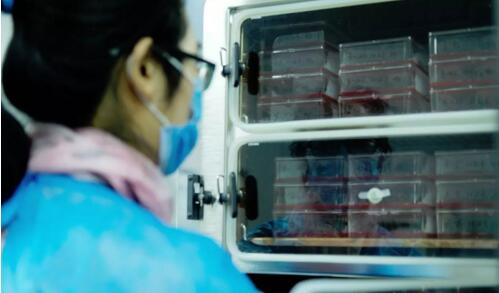 屠呦呦团队研究人员将养殖有疟原虫的血液储存到冰箱中。新华社记者孟菁摄