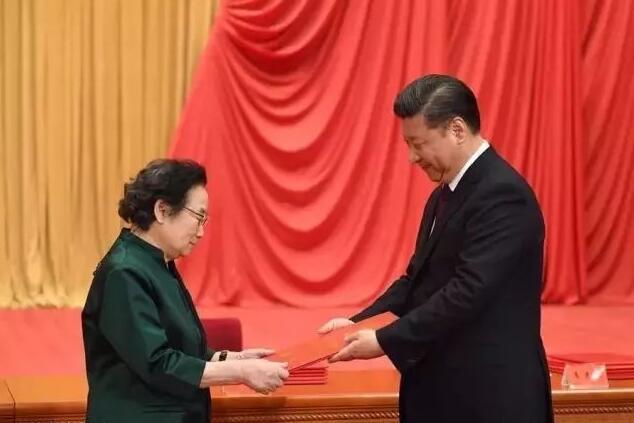 2017年1月9日,习近平向获得2016年度国家最高科学技术奖的中国中医科学院屠呦呦研究员颁奖。新华社记者李学仁摄