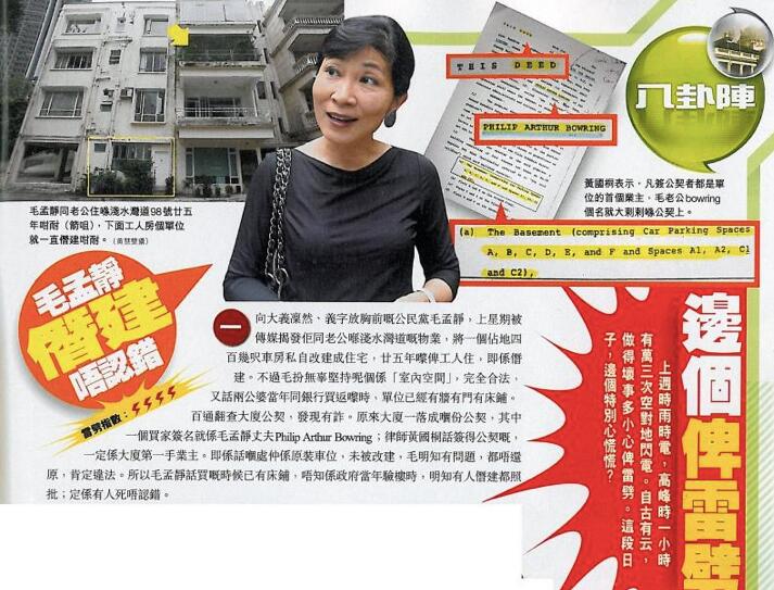 1. 毛孟靜,將車位僭建成住宅,竟然3年仍未處理