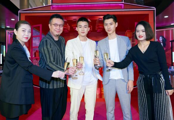 从左到右依次为:海岸商业管理有限公司常务副总经理黄于倩女士、海岸商业集团副总裁陈柏昇先生演员欧豪、Lancôme兰蔻大区销售经理孔凡奇先生、Lancôme兰蔻专卖店项目经理刘少芬女士