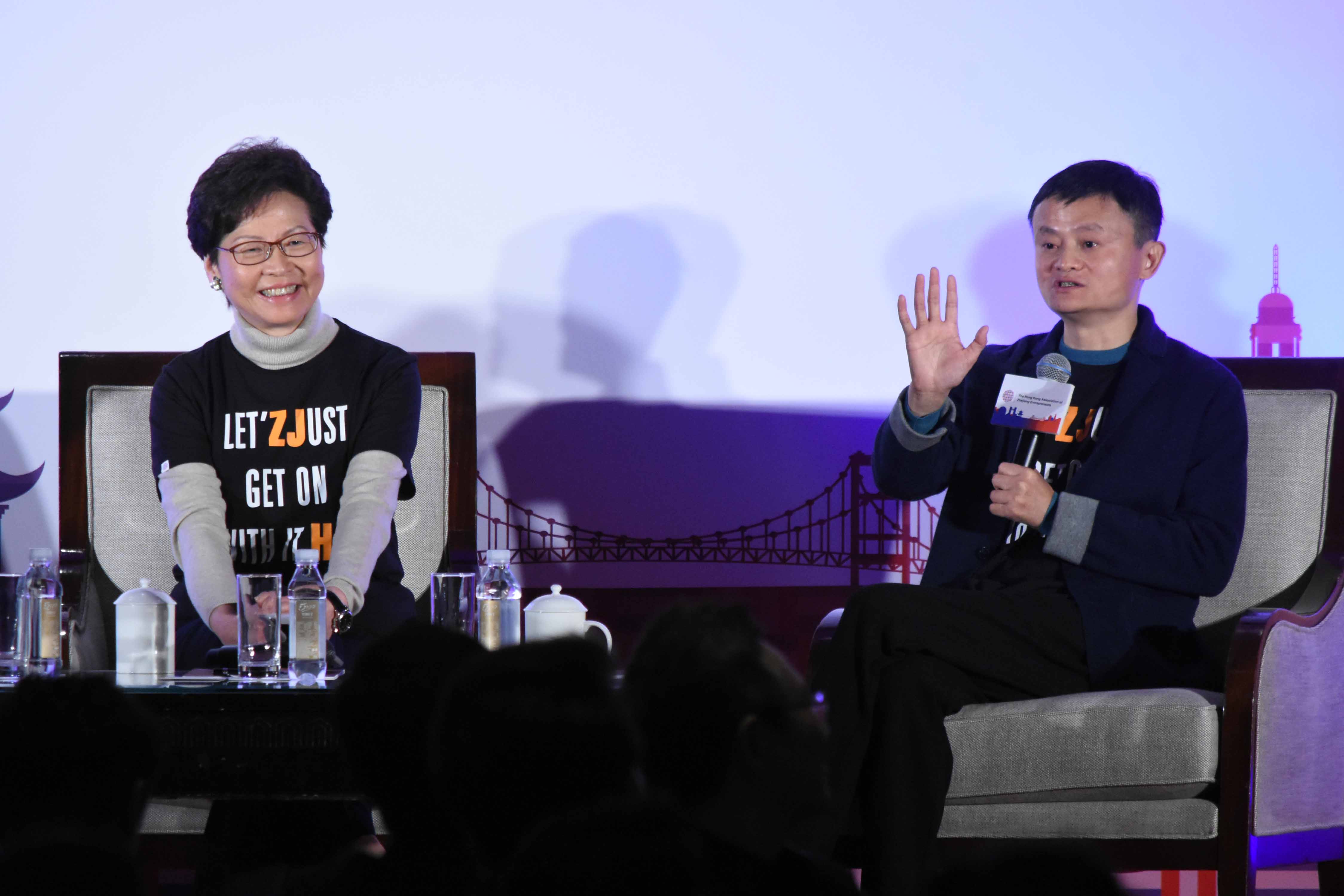 馬雲與林鄭月娥的對談是活動的一大重頭戲。林鄭月娥表示,《施政報告》內說得最多的是創新,不但科技要創新,任何範疇都要創新,政府行為也要創新,擔當「促成者」和「推廣者」的角色,迎接海內外不同企業來港發展。她指出,港交所啟動「同股不同權」機制,迎接新經濟企業,期望阿里巴巴能重回香港上市。