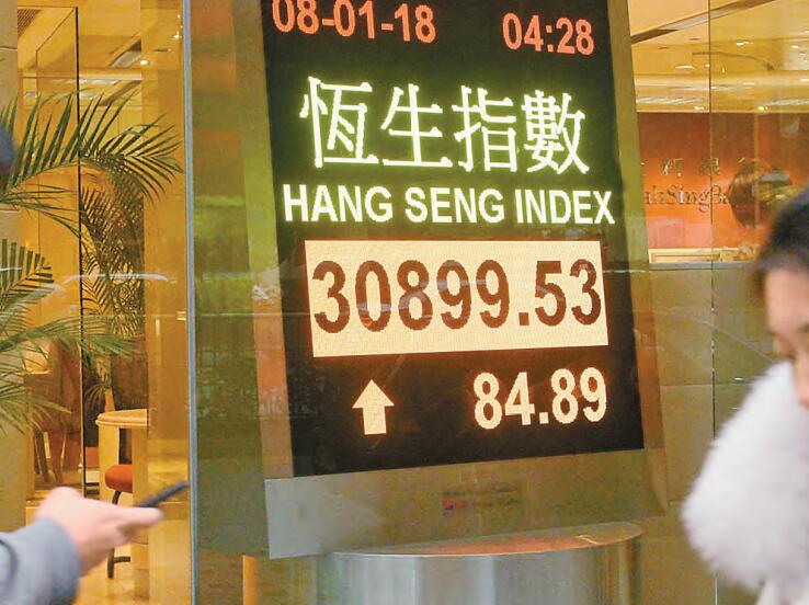 【香港商報網訊】2018年港股開紅盤,受惠海外股市造好,以及內地資金入市。第一周恒生指數升895點,國企指數升502點。恒生指數在2018年第一個交易天已經升破30000點。