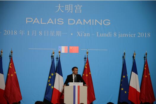 马克龙8日一早抵达第一站西安,携夫人先后参观秦兵马俑、大雁塔及西安大清真寺,随后在大明宫丹凤门发表重要演讲。