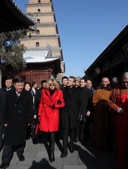 马克龙与夫人参观大雁塔@视觉中国