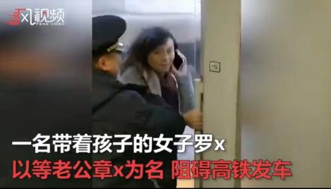 视频中显示,高铁已到发车时间,一名带着孩子的女子依然站在车门处,阻碍列车关门。多名工作人员要求她上车或者下车,但该女子声称她的老公迟到了还没上车。