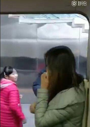 工作人员因为怕她的脚夹住,不得已将车门重新打开,这名女子又重新钻进列车。