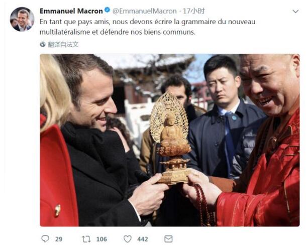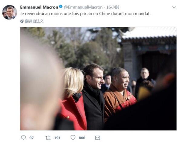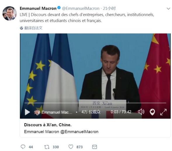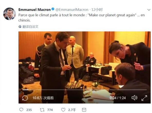 原标题:马克龙到中国一天更新31条推特还附幕后小视频什么情况?
