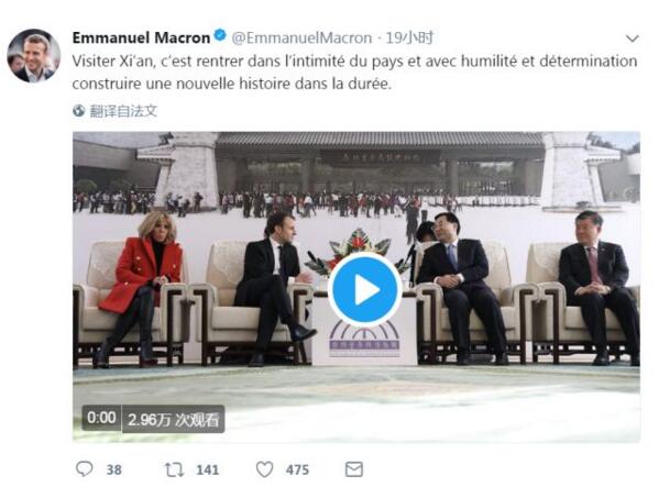 首先,马克龙总统推送了自己在大明宫国家遗址公园丹凤门演讲的重要内容,对演讲的内容进行了直播。