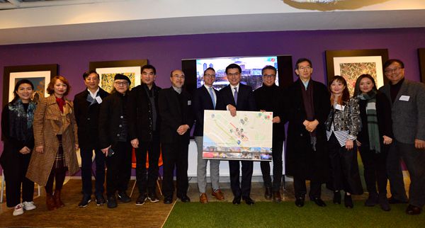 政府計劃在深水埗區建立設計及時裝基地,預計於2023年落成,商經局局長邱騰華(右六)昨出席傳媒簡介會。記者馮俊文攝