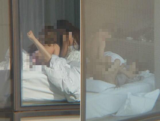 近日網上廣傳多條片段,天后一間酒店有房客親熱時,懷疑被人隔住落地大玻璃遠距離偷拍。流出的片段可見,男女住客疑誤以為酒店的玻璃幕牆不透光,未落窗簾,有穿內衣的女子自拍,亦有男女性交。