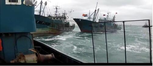 4日,2艘中国渔船被韩方海警扣押(现场图)