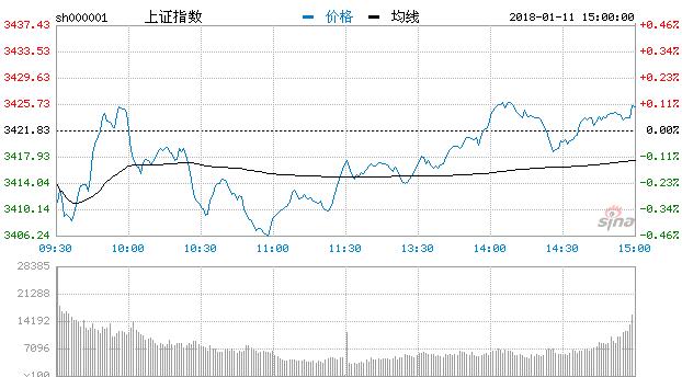 【香港商報網訊】1月11日消息,早盤兩市低開,滬指在區塊鏈、稀有金屬等板塊的帶動下快速拉升翻紅,短暫橫盤震蕩後,陷入回調態勢,創業板開盤相對低迷,但在題材股的帶動下逐漸走高翻紅。午後,滬指跌幅逐漸收窄並翻紅,創業板持續走高。截止收盤,滬指報3425.34,漲0.10%;深指報11464.20,漲0.24%;創指報1084.23,漲0.73%。