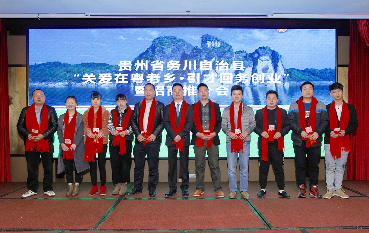 【香港商报网讯】记者陆绍龙报道:1月10日,贵州省务川仡佬族苗族自治县(简称务川县)在珠海举行“关爱在粤老乡,引才回务创业暨招商推介会”。在活动上,务川相关领导为优秀务工人员颁发了慰问金,并与珠海、中山、东莞、深圳等多家企业签署电子技术开发、旅游项目开发等多项目合作协议。