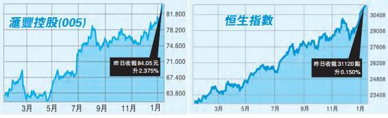 從這一輪港股升勢來看,恒指仍是輪流由幾個重磅板塊推升,個別急性板塊出現回吐,但亦有另些板塊接力推上,令恒指得以保持升勢,在內銀及內房股急升之後,近兩天焦點就落在汇控(005)身上。該股在80元附近橫行整固一段時間,本周三在北水的力量下出現突破,當天北水罕有地出現淨買入金額23.59億元,相當於當天該股成交額的四成。昨天北水對汇控的吸納行動稍有收斂,但仍錄得淨買入3.1億元,股價亦輕易突破84元水平。估計汇控股價在82元有支持,趁機仍可買入。