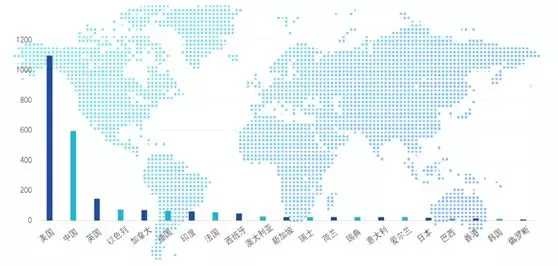 这个统计里面,美国大约1100家左右,中国大约600家左右,其他国家的总和大约800多家。