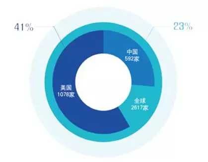 中国592家,占全球23%,其他国家486家。