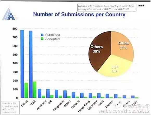 根据周志华发布的统计结果: