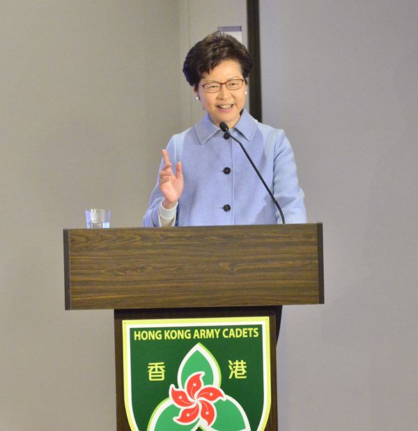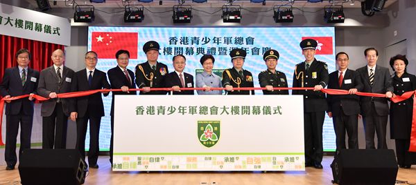 在昨日香港青少年軍總會大樓開幕典禮及總會三周年會慶儀式上,行政長官林鄭月娥致辭時贊賞,香港青少年軍只是一個三年時間的新制服團體,能有此成績絕對不易。她感謝各界捐助、贊助及支持,希望大家日後繼續維持熱心、積極地支持總會發展。作為行政長官,她亦會繼續關心和支持香港青年發展。林鄭指出,自己競選期間和擔任行政長官後,在競選綱領或《施政報告》中都很重視與青年同行,對於香港青年人充滿信心、充滿期盼。希望每一位青年都能夠被培育成為有國家意識、有香港情懷、有世界視野,對社會有承擔的人。