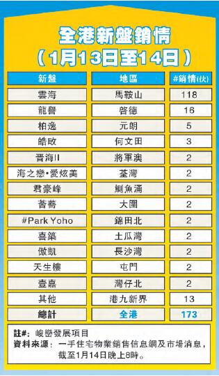 【香港商報网訊】記者葉子睿報道:新鴻基地產(016)旗下「雲海」領跑周末新盤銷情,於上周六售出共118個單位,綜合一手銷售網及市場消息,截至昨晚約8時左右,全港一手市場共賣出約173伙。由於前一個星期未有大型新盤銷售,在「雲海」等新盤帶動下,較前一周的75伙成交量上升98伙。而新地「雲海」銷售理想,發展商於昨日加推價單第4號共36伙應市。