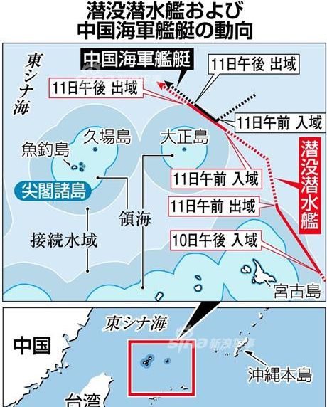 據日本前往監視的反潜機反饋的情報顯示,1月10日下午,在宮古島附近發現中國潜艇由東北向西南航行。隨后潜入水下,1月11日上午,該艇再次浮出水面,向著中國東海前進,逼近赤尾嶼,隨后潜入水底。原本日本方面判斷其應該已經返航了,但是1月12日下午,卻再次發現這艘潜艇在釣魚島西北部浮出水面。懸挂國旗巡航。防衛省相關人士指出,此次航行「可能意在確認海上自衛隊的反潜預警能力」。