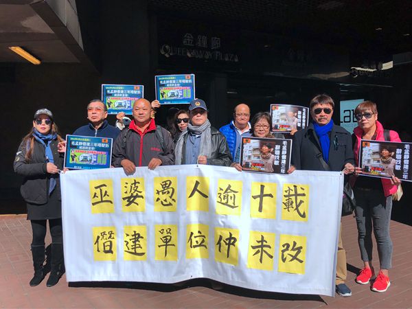 【香港商報网訊】記者馮煒強報道:反黑金關注組約10餘名成員昨日在金鐘港鐵站外示威,團體指立法會議員毛孟靜在淺水灣的住宅單位,將開放式車房改為封閉式的住宅,涉嫌違建,團體要求毛孟靜將違章建築立即清除。