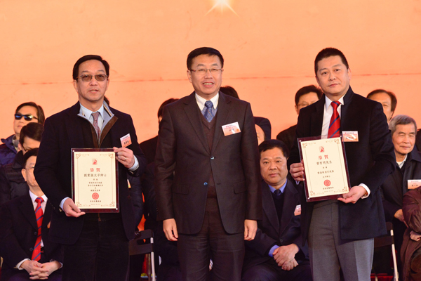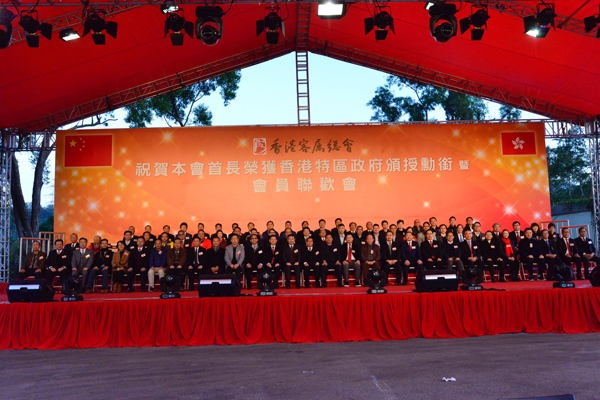 一眾主禮嘉賓向12位獲授勳及嘉獎人士頒發紀念狀﹔該會常務副主席吳火豪致祝酒辭。同場舉行香港客屬總會義工隊誓師儀式,並進行授旗﹔席間設有歌舞表演,更有Maria Cordero(肥媽)等影視紅星出場獻聲,氣氛熱烈。