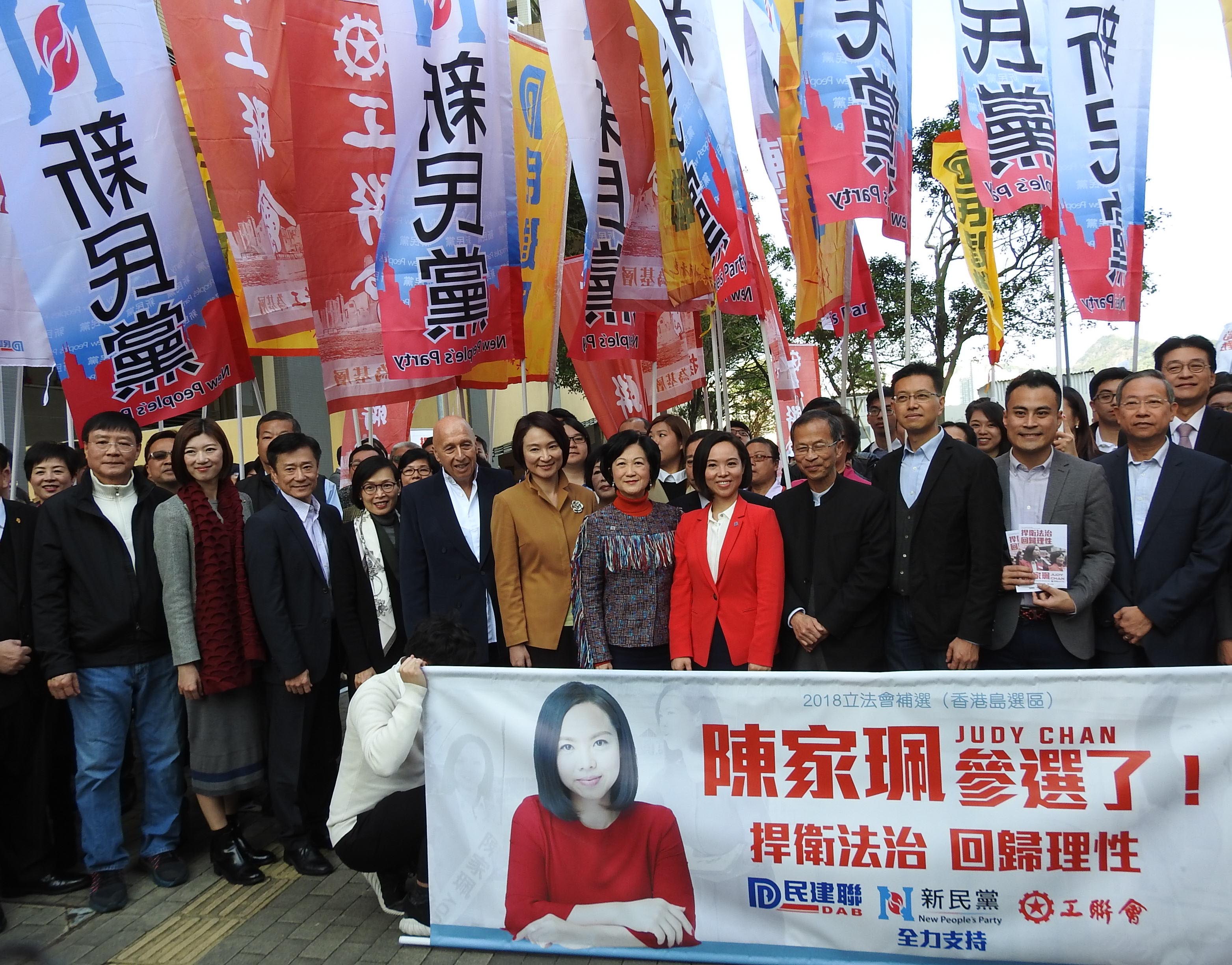 民建聯主席李慧琼形容,建制派是為香港而戰,經協調後支持陳家珮參加立法會港島區補選。她形容陳家珮有能力、有承擔,是理想的候選人,希望各界都能團結,支持陳家珮。民建聯副主席張國鈞指出,法、理、情三者需要平衡,而他欣賞陳家珮決心捍衛法治。