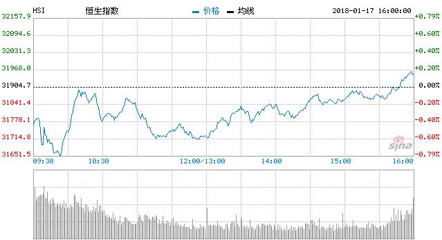 【香港商報網訊】恒指今日低開0.25%,之後一度跌逾0.8%,午後震蕩上揚,收複早盤失地,突破2007年創下的盤中最高紀錄31958.41點,截止收盤,恒生指數漲0.25%,報31983.41點,創曆史新高;國企指數漲0.64%,報12868.78點;紅籌指數漲0.02%,報4679.13點。大市成交1782.55億港元。港股恒指年初至今已累漲6.9%,並且成交量持續維持在千億以上。