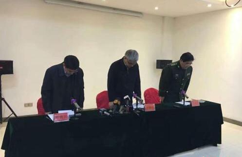 资料图:2016年11月24日,在江西省丰城电厂“11?24”事故新闻发布会上,李贻煌(中)向事故罹难者默哀。 王剑摄