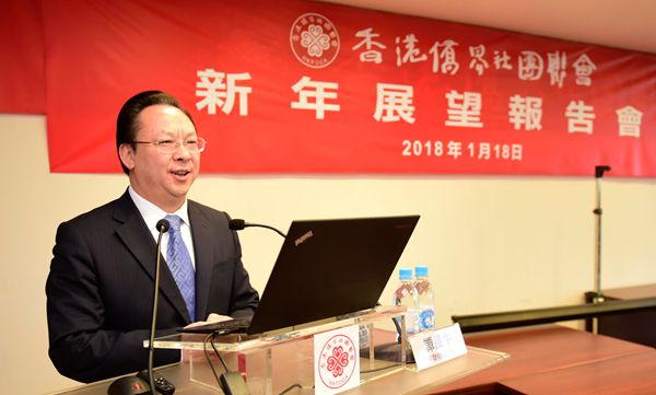 香港僑界社團聯會舉辦《新年展望報告會》,會上中聯辦副主任譚鐵牛作《科技發展與人類社會》演講。