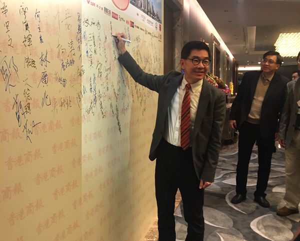 陳寅社長(香港商報社長)、楊健副主任(中央人民政府駐香港特別行政區聯絡辦公室副主任)、各位嘉賓、各位工商界的朋友: