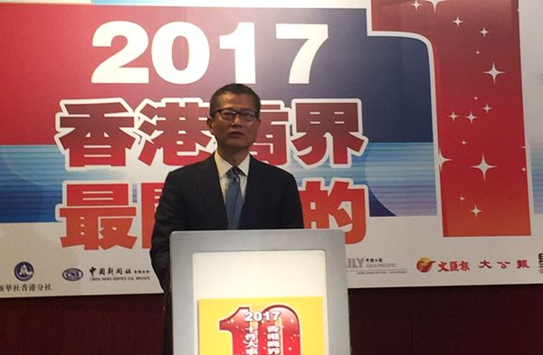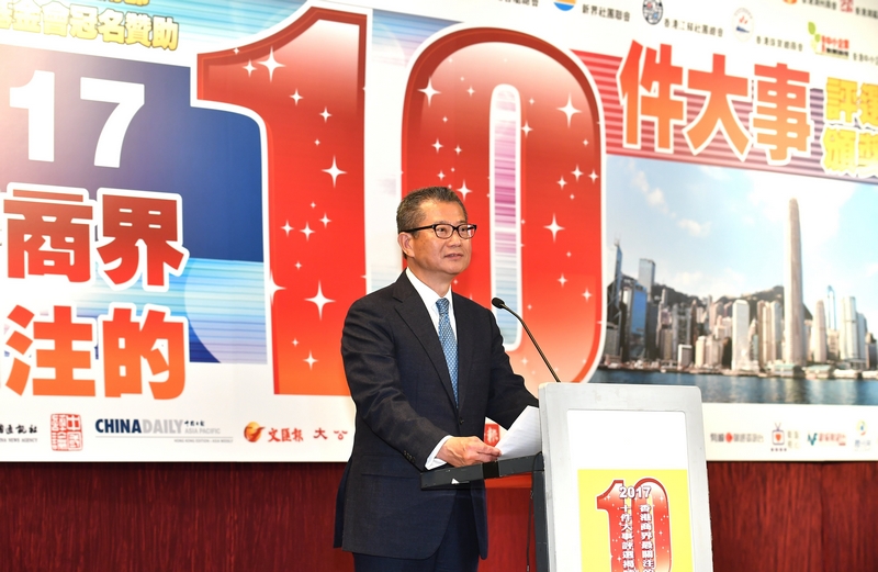 財政司司長陳茂波亦發表了講話,祝賀評選活動舉辦成功。他表示,去年商界最關注大事中有7件與中國有關,中國已經成為全球經濟增長的主要引擎,香港要認清國家和國際的大形勢,努力提升在金融和其他高增值服務的優勢,大力推動創新科技應用和發展。