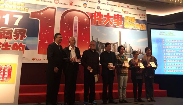 活动最后,主禮嘉賓上台分別為「2017香港商界最關注的十件大事」获奖者颁奖。