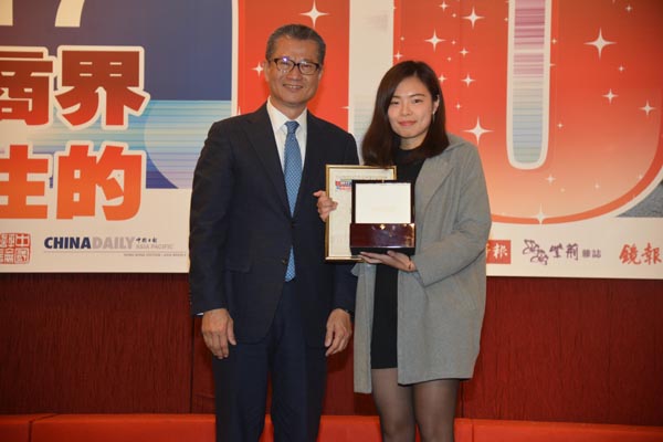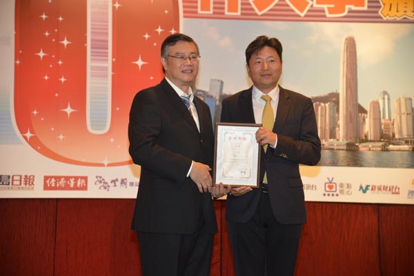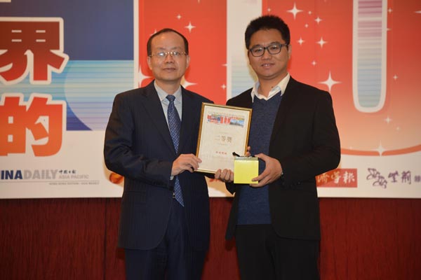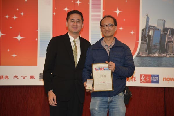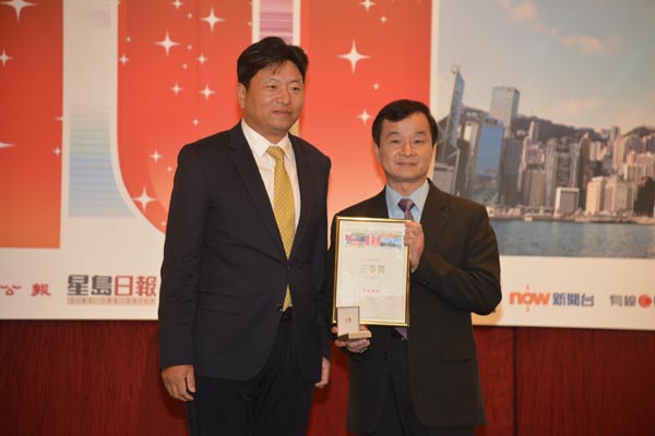 香港商報社長陳寅(左)頒獎予各優異獎得主。