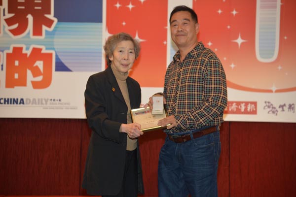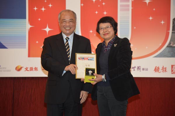 全國政協常委伍淑清(左)頒獎予三獎得主。