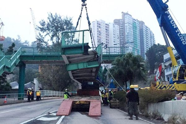 【香港商報网訊】記者萬家成報道:柴灣道前日發生吊臂車撼歪行人天橋罕見意外后,來回線一直須全線封閉,途經巴士全部改道,由於被撞毀行人天橋部分鋼結構及附屬高架標誌嚴重受損,路政署昨日凌晨派員通宵移除該截行人天橋,直至清晨時分始重開上址路段。另外,肇事吊臂車司機對於將要面臨的天文數字賠償金額,感到憂心忡忡。